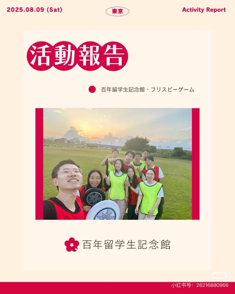 2025年8月9日(土)、百年留学生記念館は、アマチュアながら本格的なフリスビーコーチ・豊豊氏と共催し、神奈川の広大な芝生広場にてフリスビー交流イベントを開催しました。